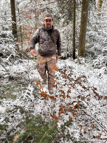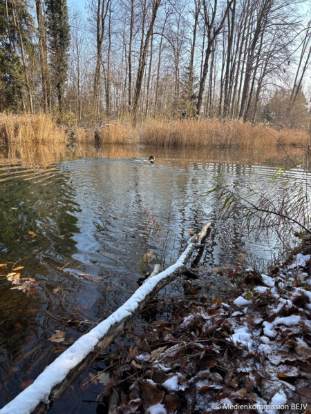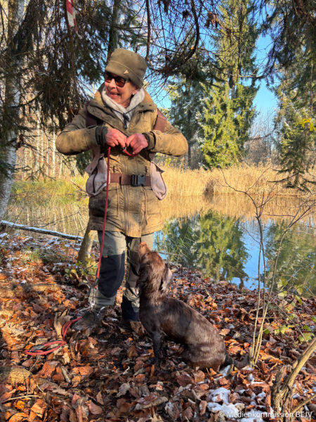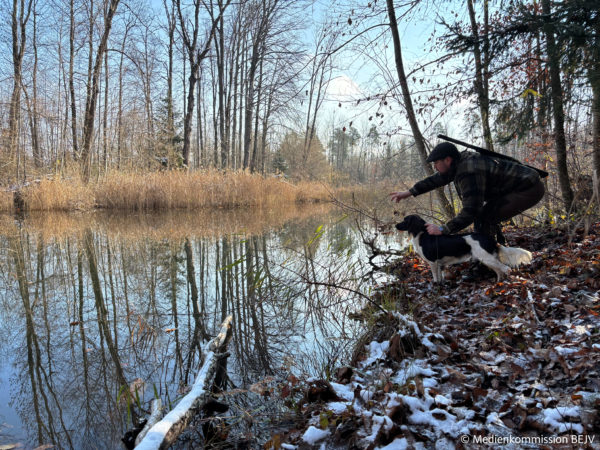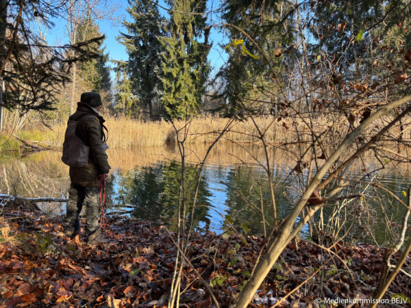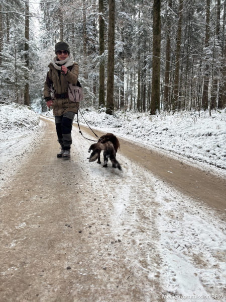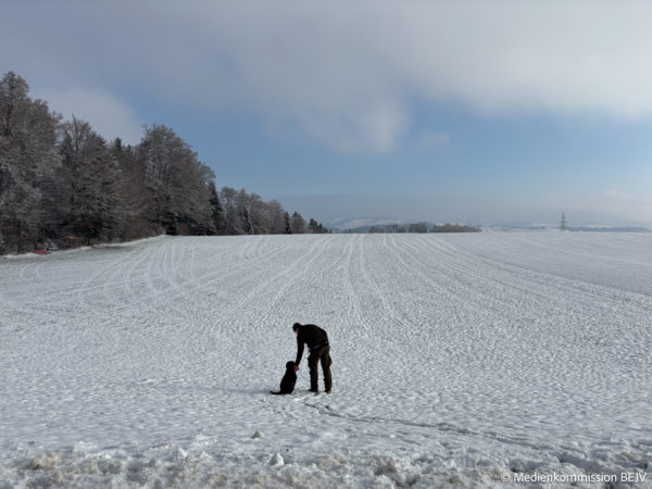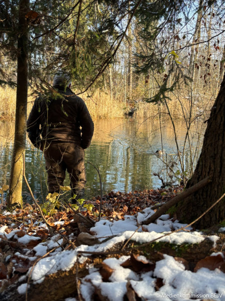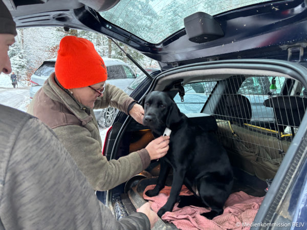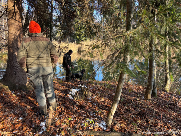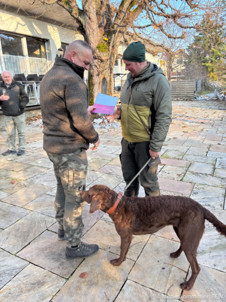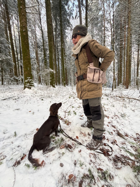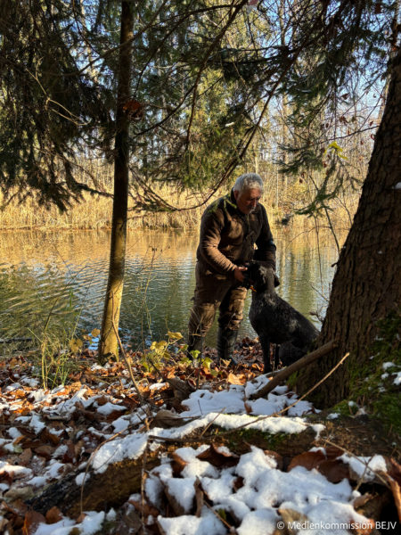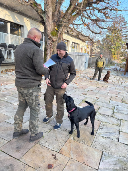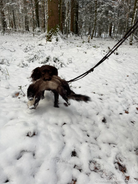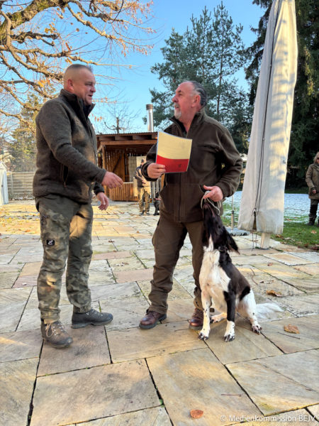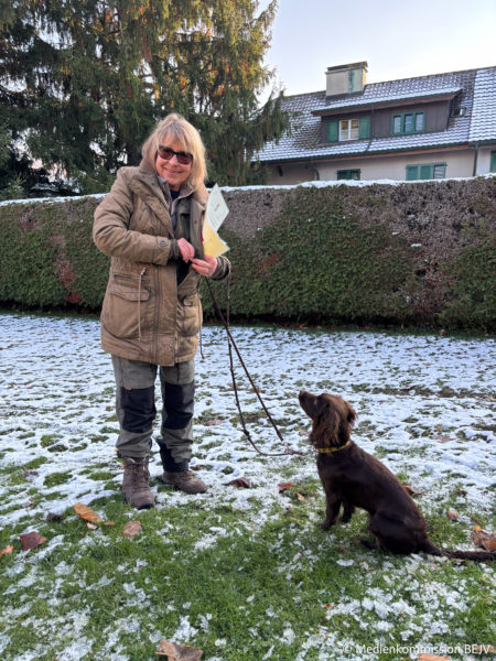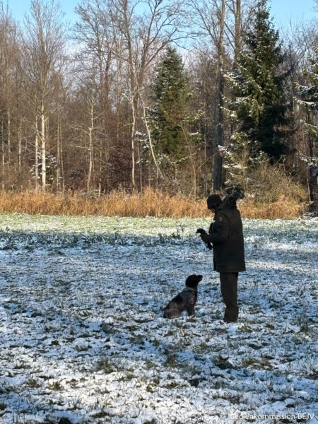 Am Prüfungstag zeigte sich Belp von seiner frostigen Seite. Es war kalt und das Prüfungsgebiet verschneit, die Sonne zeigte sich jedoch gegen die Mittagszeit. Auch das Wasser war erfrischend kalt, die Temperatur lag bei ca. 7-8 °C. Die Muskulatur der Hunde kühlt im Wasser schnell aus, was die Leistungsfähigkeit beeinträchtigen kann. Deshalb waren eine zügige Arbeit und sofortiges Abtrocknen wichtig. Wer an diesem Tag erfolgreich war, bewies nicht nur Können, sondern auch Durchhaltevermögen. „Mehr üben bedeutet mehr Sicherheit und mehr Erfolg“, betonte René Kaiser – ein Satz, der an diesem Tag spürbar wurde. Die Vorbereitung auf diese Prüfung verlangt Disziplin und Geduld, denn die Kombination aus spätherbstlicher Witterung und der zeitlichen Nähe zur Niederjagd erhöht den Schwierigkeitsgrad.