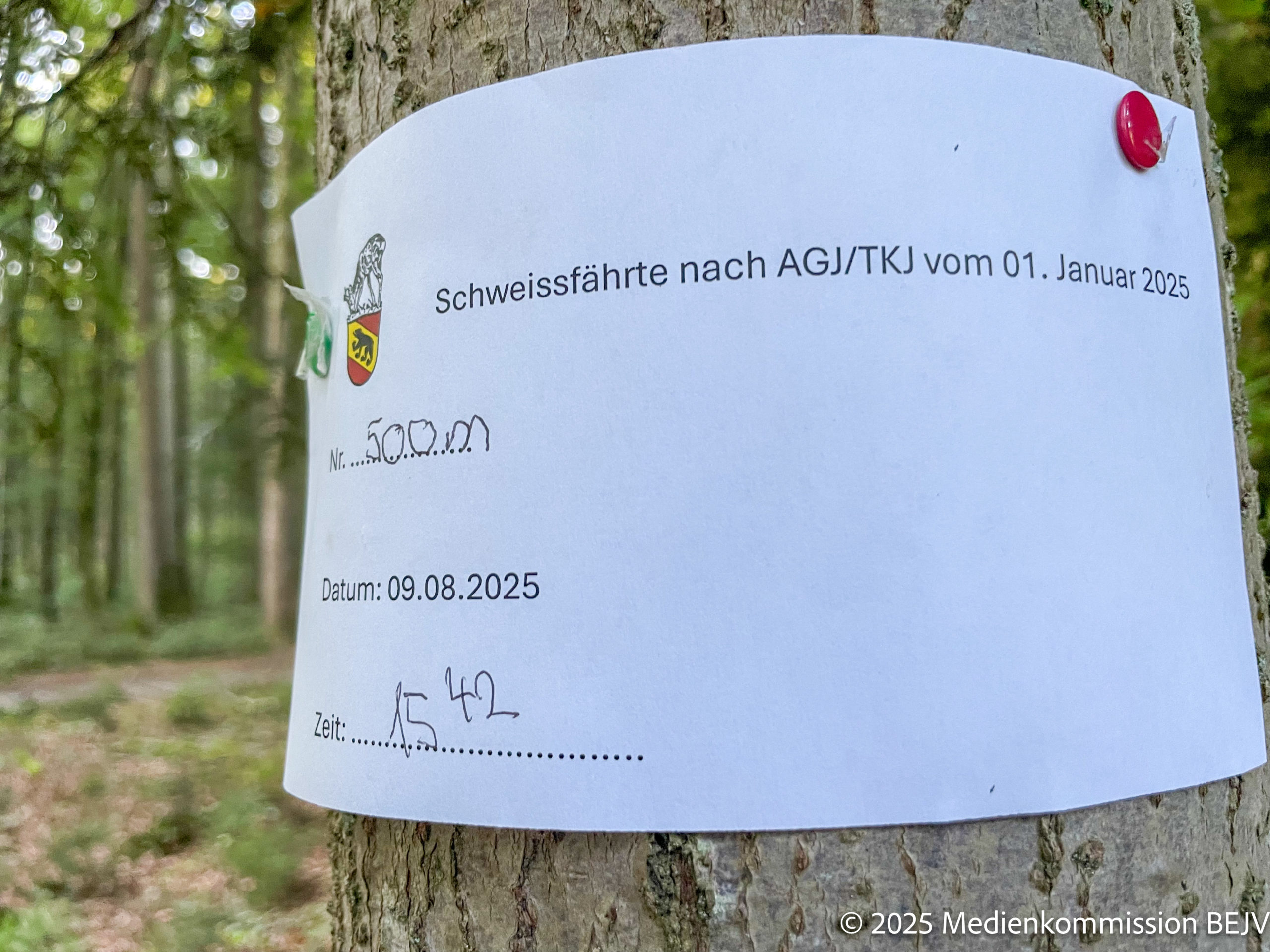 Dieses Jahr hat der Jägerverein Oberaargau rund um den Präsidenten Beat Brenzikofer am 10. August 2025 zum ersten Mal die kantonale Schweissprüfung Mittelland bei Seeberg / BE organisiert. René Kaiser amtete als Prüfungsleiter, Urs Stettler als Prüfungssekretär. Die Erfolgsquote lag bei 50% über 1000m und rund 64% auf der 500m Fährte.